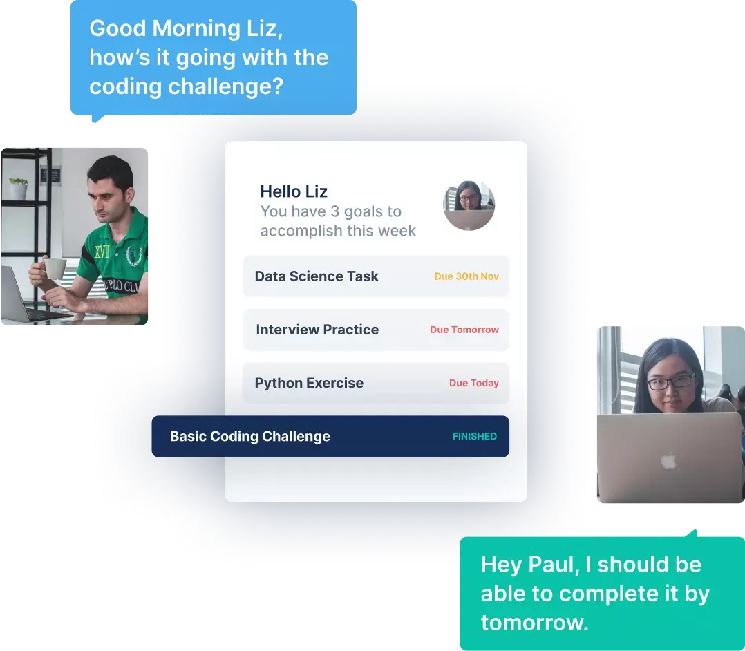 Ask questions, kick the tires on a new idea, or discuss professional progress and improvements in your online mentoring sessions with unlimited messaging. Have an upcoming interview at Amazon? Need help in product management or marketing? Whatever it is, our online mentors are there for you. Fewer interruptions in your day-to-day and easier documentation. A text away, get expert guidance at your convenience from your mentor.